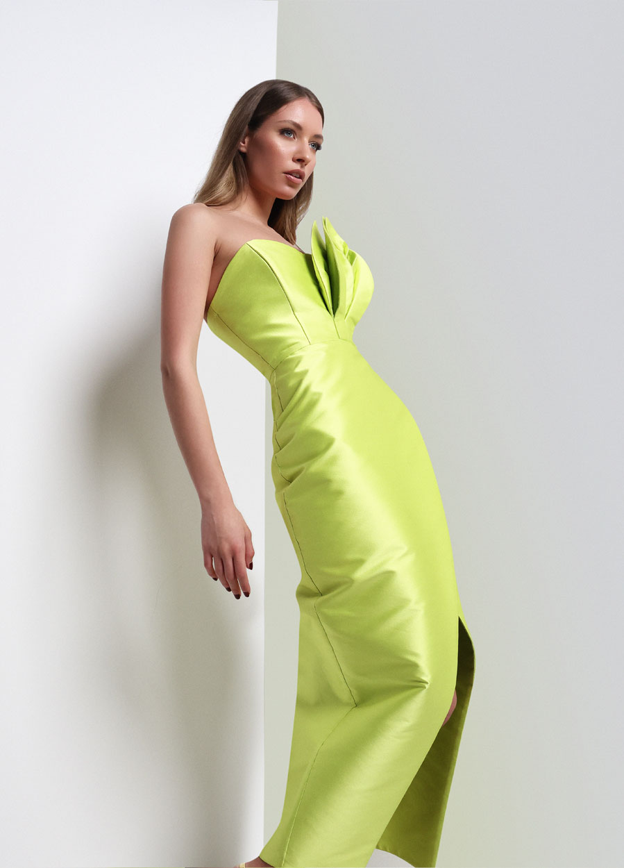 Haljina Lotos predstavljena je na Torino Fashion Week-u i sa njom započinje nova era u estetici brenda Helena Scrittore. Kroj haljine je takav da odgovara svim građama žena, savršeno sakriva nedostatke i veoma je udobna. Njena elegancija čini je pogodnom za sve svečane prilike, a predstavlja i odličan izbor haljine za venčanje.